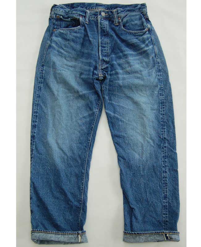 通常加工は、ひざアタリ、蜂の巣などは現実とは違う風合いでしたが、このXXモデルは実際に着用された、古着の感じが良く出ております。
